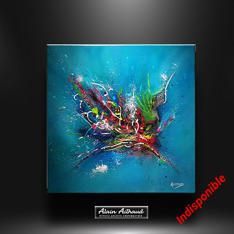 Réalisées au pinceau, couteau, projections avec des peintures de qualité, sur un châssis toilé, ces œuvres modernes, colorées et principalement destinées aux personnes étant à la recherche d’une œuvre dynamique aux couleurs vives et lumineuses.