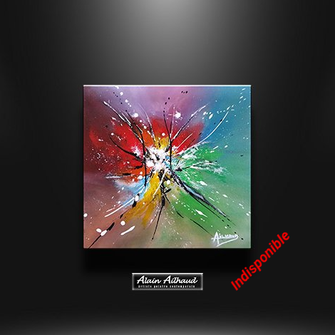 Réalisées au pinceau, couteau, projections avec des peintures de qualité, sur un châssis toilé, ces œuvres modernes, colorées et principalement destinées aux personnes étant à la recherche d’une œuvre dynamique aux couleurs vives et lumineuses.