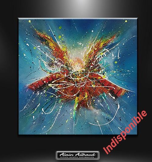 Réalisées au pinceau, couteau, projections avec des peintures de qualité, sur un châssis toilé, ces œuvres modernes, colorées et principalement destinées aux personnes étant à la recherche d’une œuvre dynamique aux couleurs vives et lumineuses.